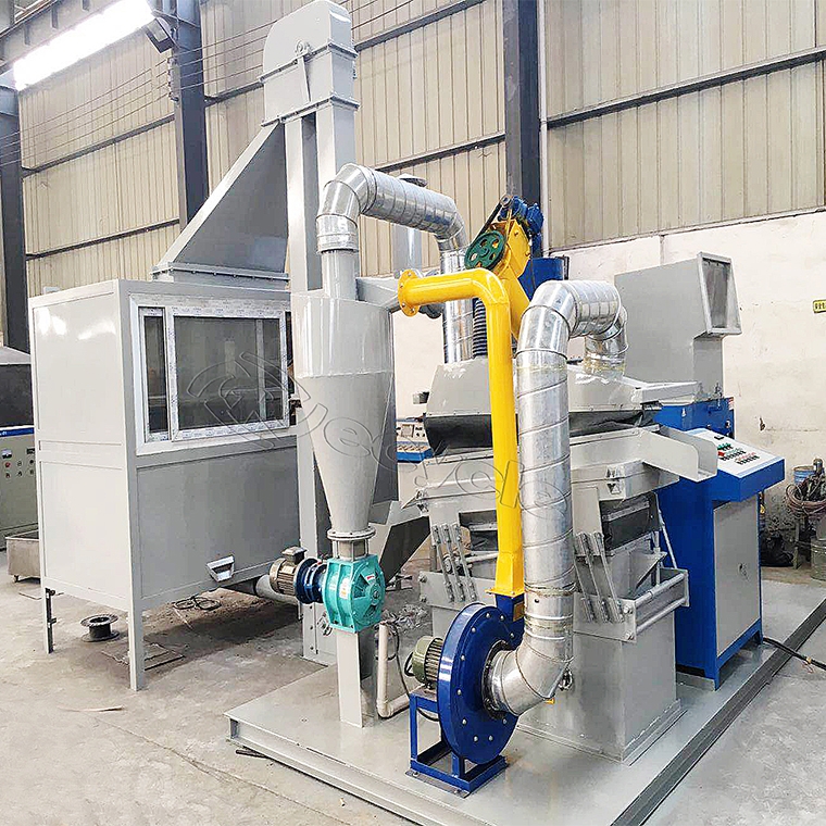 瑞赛克机械全自动铜米机设备投资少,耗能低,操作成本低,效益高没有损耗,金属线及塑料外皮全部回收。技术简单,易掌握,不涉及高温、超低温、高压、燃烧等复杂设备和技术,没污染,不产生热解物,不产生不允许排放的有毒物质。并且全自动铜米机(铜米机)实用性强,可用于各种生产规模及环境,操作简单,适合各种技术水平人员操作。